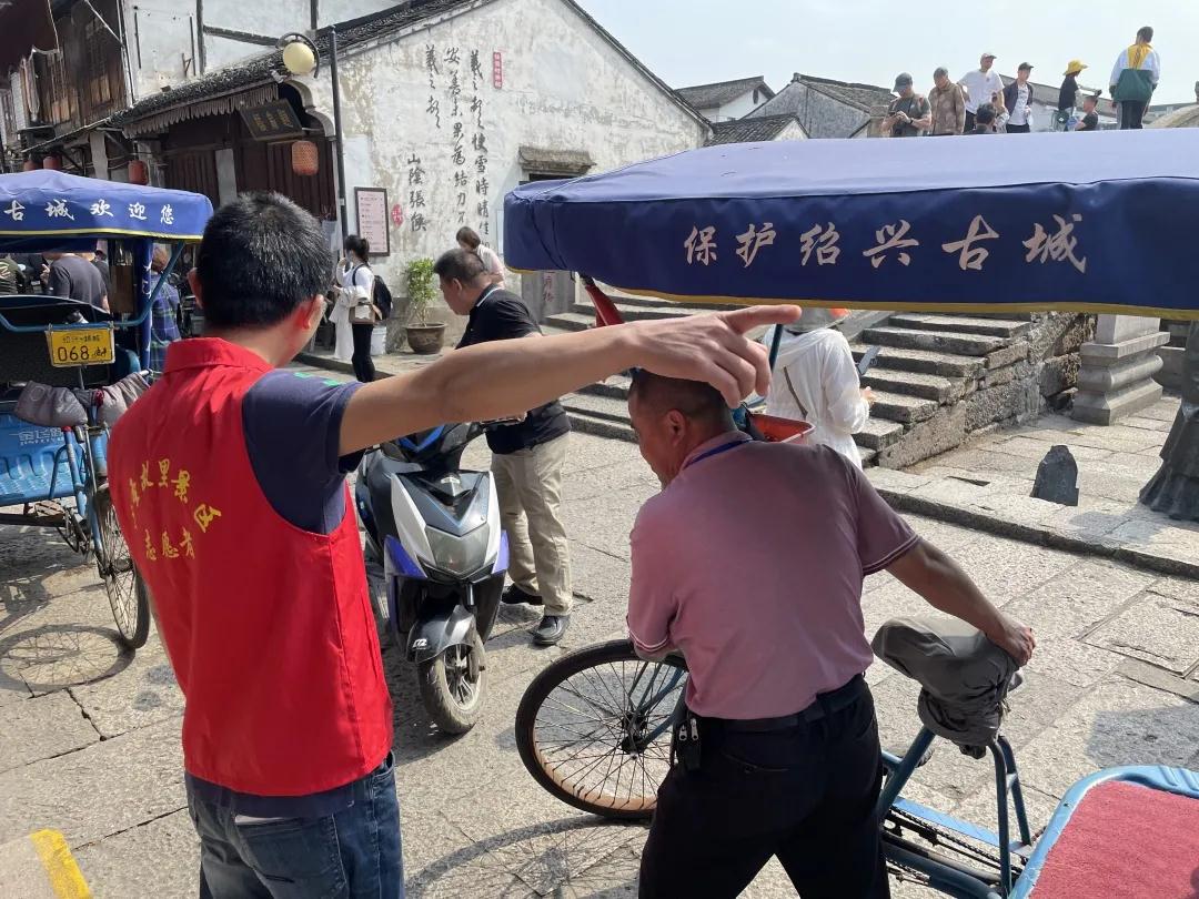 志愿者们帮助维持景区秩序,引导游客文明旅游,他们用一抹志愿红,为五一增添色彩。