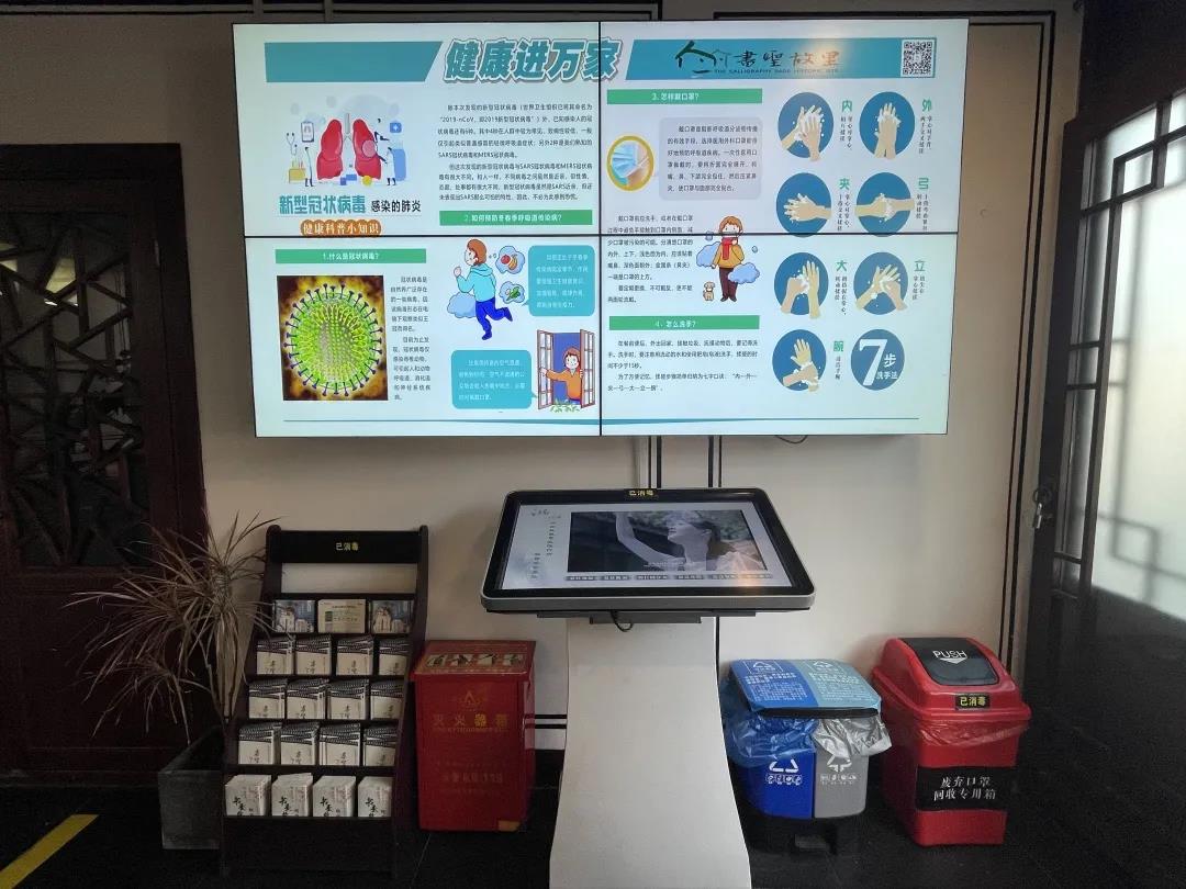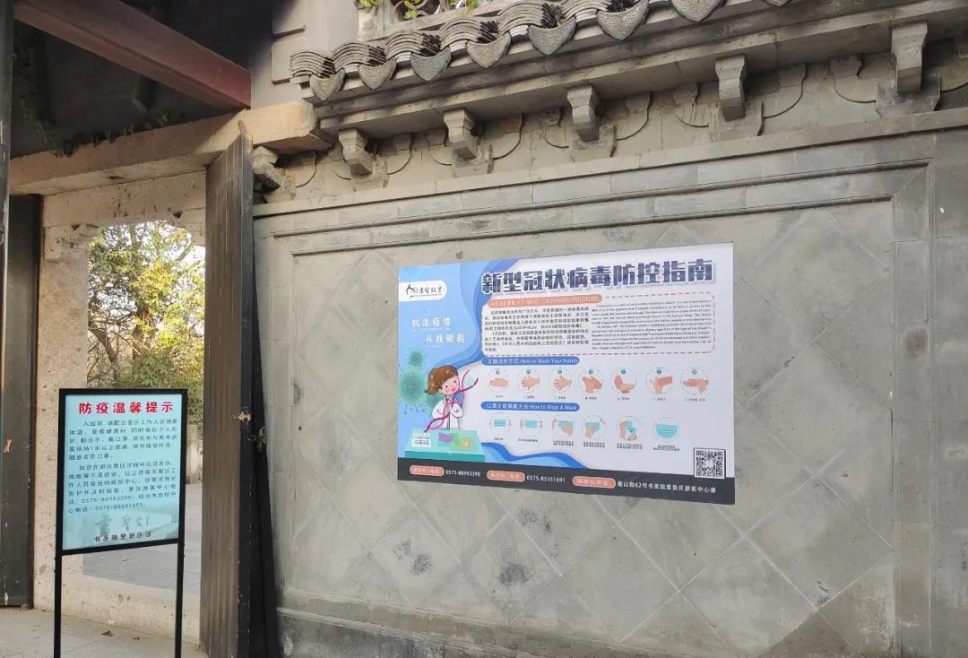 在景区醒目位置张贴宣传海报,并用LED屏播放疫情防控的要求、常识和注意事项。在各场馆放置中英文防治新冠肺炎的宣传资料向游客免费发放。