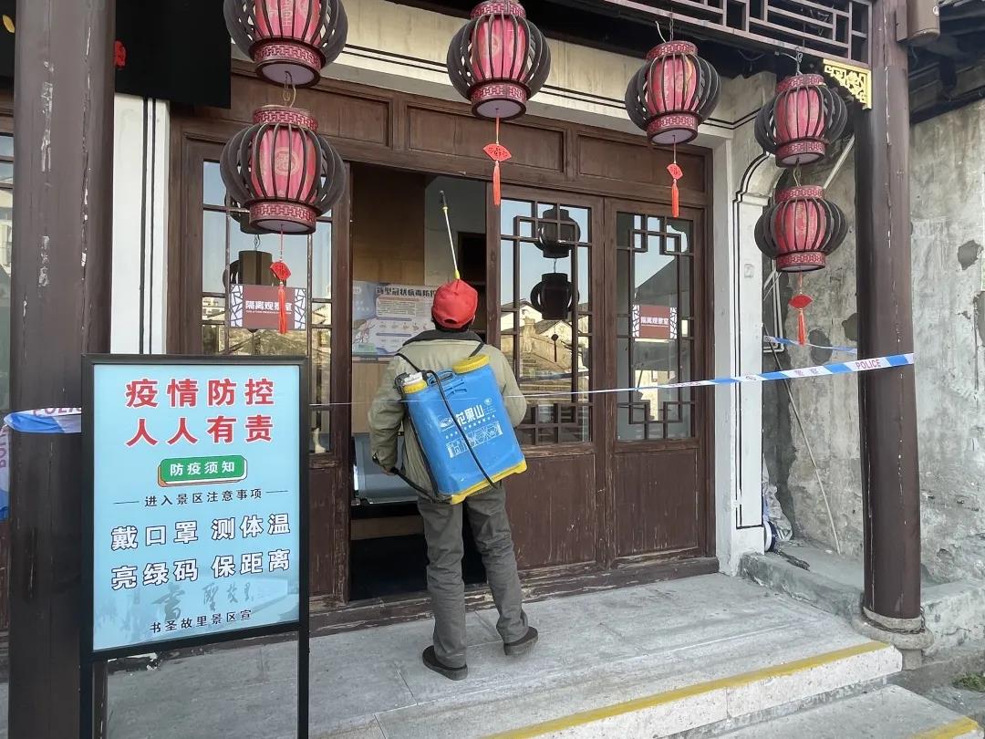 景区工作人员针对场馆各个区域,每日多次进行全方位消毒做好防疫消杀工作。
