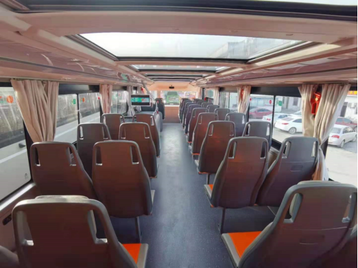 “大禹号”采用10米级纯电动双层巴士,全车高4.17米,一层拥有11个座位,二层拥有44个座位,二层采用全景天窗设计,观景视野更为清晰,以便乘客们得以饱览古城风光。