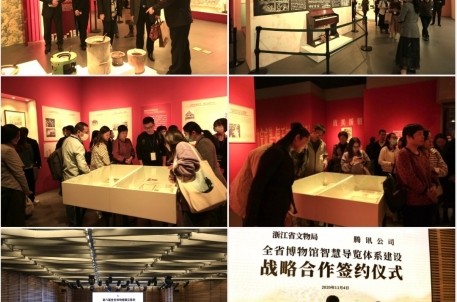 11月4日,由浙江省博物馆主办的全省第六届博物馆陈列展览交流培训会在宁波博物院举行。会上宁波市文化广电旅游局二级巡视员韩小寅、浙江省博物馆馆长陈水华、腾讯地图总经理王锐、浙江省文物局副局长曹鸿分别致辞。同时,浙江省文物局和腾讯公司签署了全省博物馆智慧导览体系建设战略合作协议。