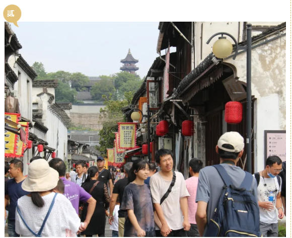 蕺山老街上杏黄色的酒旗随风飘动,清一色的白墙黑瓦错落有致,古式台门、里弄小巷、石桥流水让景区充满了浓郁的江南气息,吸引着往来的游人来回穿梭,久久不愿离去。