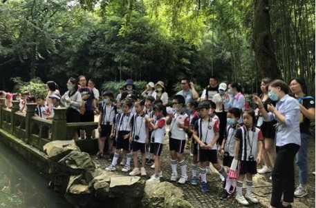 7月19日,塔山中心小学的小朋友和家长们,在兰亭景区开展了今年首场暑期定制版亲子研学游活动。