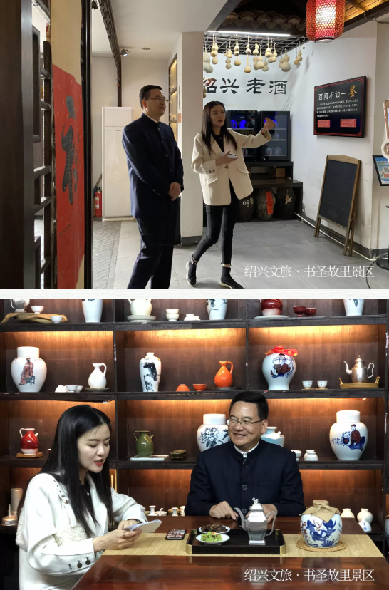 盛市长带领大家“云”品尝绍兴手工酿造黄酒,向网友们娓娓讲述了“曲水流觞”、“钗头凤”等与黄酒有关的故事。