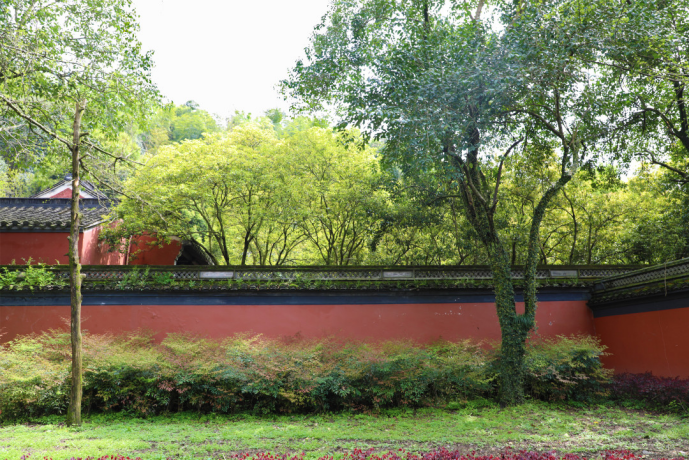禹陵中,静谧无杂音,惟听得春雀啾啁,鸟鸣山更幽。庭院内触目皆是绿意,满园的勃勃生气从泥土里升腾而上,映得孤寒了一整个冬天的墨瓦红墙似乎都带有了春日的温度。