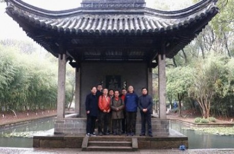 1月11日,日本西宫市土木局公园绿化部花与绿课课长藤原隆之、都市局建筑开发指导部建筑调整课课长岩井一郎在绍兴市外事办朱宏亮处长的陪同下来兰亭书法博物馆进行学习交流考察。