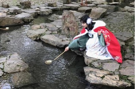 12月底,在兰亭景区曲水流觞景点处,随着盛满绍兴美酒的觞杯随着之字形的曲水蜿蜒而下,“抖IN”网红大咖和身着汉服的古代美人儿以善于发现美的眼光和善于记录美的镜头,完成了在兰亭景区的直播宣传活动。