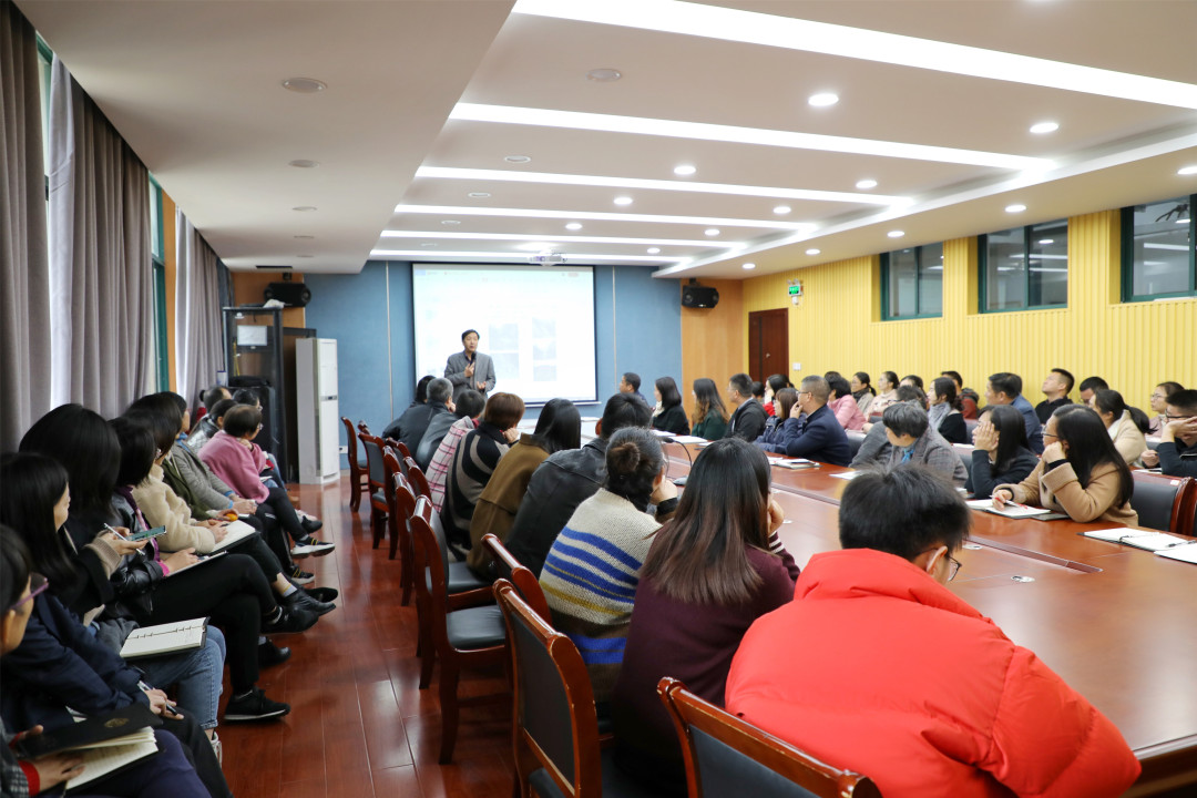 本次进校园活动还邀请到绍兴文理学院周一农教授,面向校内教职工作《沿着大禹的足迹》主题讲座。讲座由三部分内容组成,周一农教授深度阐释大禹功绩、大禹文化的当代价值以及大禹文化传播情况,为学校老师们带来了一场文化盛宴。