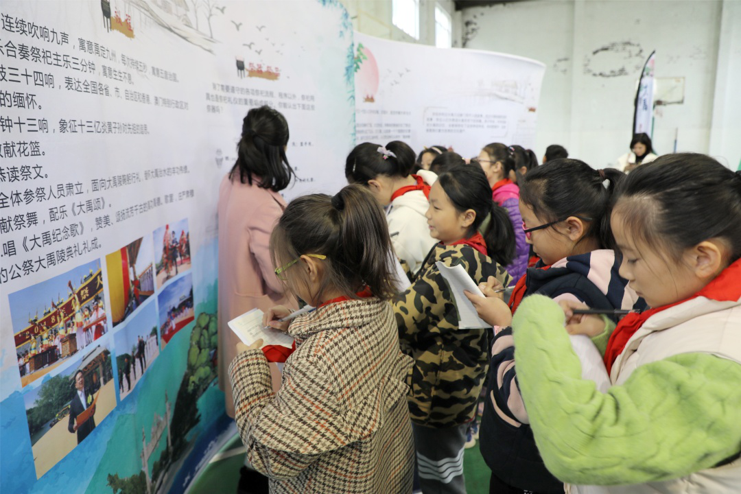 “以前只知道三过家门而不入的故事,现在我还知道了禹王爷爷治理黄河、毕功了溪、开创华夏第一个王朝的光荣事迹,真不愧是我国古代的治水、立国英雄。”不少同学在观展后,表示自己对大禹的历史地位、伟大功绩有了更为全面的认识。