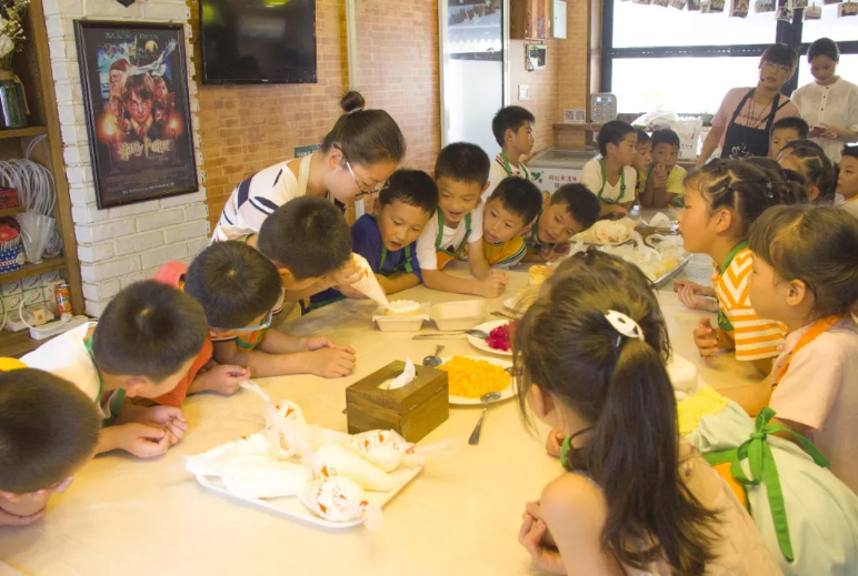 在师傅的指导下,自己动手制作蛋糕。同学们拿着亲手制作的"定制款"蛋糕,品尝了美食,也了解手工美食制作工艺,收获了很多烘焙知识。