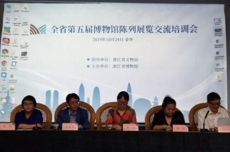 培训会上首先由金华市文化广电旅游局党委委员副调研员吴志明致辞;浙江省博物馆馆长陈水华讲到:博物馆公共服务综合平台的功能从日常实际情况出发,所有的资源向公众开放和提供服务。平台的建设、推广和利用,在各博物馆同仁的支持下,公共服务综合平台将有效的助力我省的博物馆事业发展,在全国博物馆届起到引领和示范作用;浙江省文物局领导曹鸿发言:展览交流培训会这种线上线下结合的展览交流模式,已经成为浙江省文博资源整合共享的一个长效机制。目前全省有382家博物馆,博物馆数量名列全国第三。前不久,袁家军省长参观浙江自然博物院安吉馆时指出:“要多举办一些临特展,多开展学术交流和国际合作,包括我们的区域合作、国内合作,扩大我们的影响,打造成一个品牌。”这是对浙江自然博物院的要求,其实也是对我们全省博物馆的要求,进一步加强馆际陈列展览的资源交流,推动馆藏文物的资源整合和共享,实现博物馆之间的优势互补,要充分发挥博物馆公共服务综合平台和陈列展览交流洽谈会的作用,互惠共赢,同时让更多好的展览走出浙江。