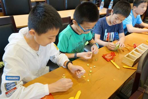 动画结束后,大家在学堂上亲手制作五谷祈福袋,以追思前贤“肇始华夏、泽被万代”的不朽功绩。