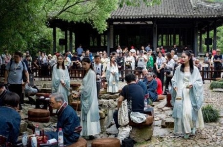 兰亭景区曲水流觞活动自推出以来,一直受到广大游客朋友和学生团的欢迎。近期,景区为升级研学游活、提高游客对流觞活动更高的美感度要求,对流觞活动中的修禊舞环节进行了重新编排。修禊舞环节时间虽然不长但是整场活动中唯一的舞蹈环节,可看性强,美感度高,如果能更好的展现必将是整场活动的亮点。新版的修禊舞仍以兰亭山水为主题,不仅重新编排延长至3分钟,还邀请专业古典舞老师抠动作,设计了6人舞蹈、4人舞等满足不同场次的活动需求,重新选购了更贴切兰亭的水墨风汉服舞衣,以舞寄景,情景交融。