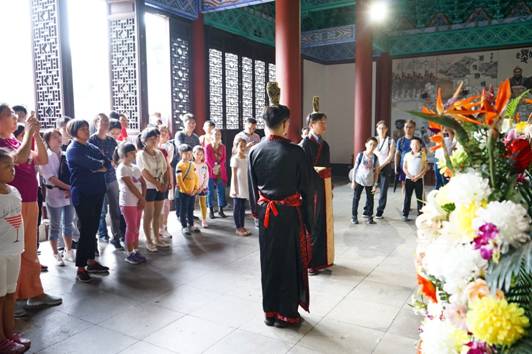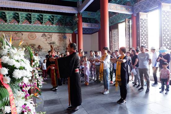 “民祭大禹”仪式为大禹陵景区最具特色的文化表演。通过祭祀禹王,展现延续千年的中华礼仪,彰显非遗文化之美,表达华夏儿女对立国始祖的追怀之情。五一节假日期间,享殿每日呈现六场极具体验感、互动感的祭禹表演,游客可身着古服参与其中,在司仪主持下敬香、敬酒、祈福,感受古老文化的魅力。