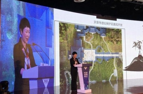 绍兴市兰亭景区管理处书记、主任,绍兴书法博物馆馆长汤晓蕾女士以文创产品、研学旅行、展览活动、节庆盛会为例,上台分享文旅融合的经验: