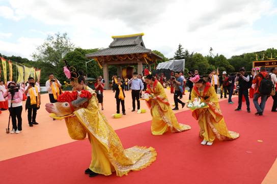 向禹王敬献江淮河汉圣水。由击鼓将军、撞钟将军护送长江圣水、淮河圣水,献给禹王,寓意为百川归海、众志成城。