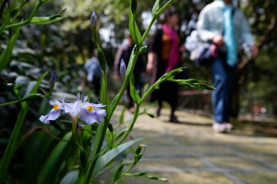 趁着阳光明媚,不少游客乐于三三五五地结伴成群,登高踏青,呼吸自然、新鲜的空气。行走于石帆山山道之间,幽深寂静、清美秀丽,令人身心俱静,悠然自得。