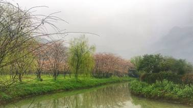 现在,漫山遍野的樱花已将宛委山麓点缀得粉嫩。沉浸于此,无人不心生浪漫。此时的樱花花树宛如徐志摩笔下的美人,微风吹来,一片片小小的花瓣悠然地飘落,但见其一低头、一蹙眉的温柔。