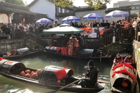 十里红妆,锣鼓喧天。水上婚礼是绍兴人过年的一大特色亮点。值此新春佳节之际,我公司在鲁迅故里水巷,特别策划了 “水上婚礼秀”。
