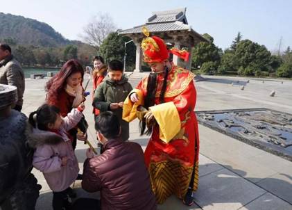 新春假日期间,大禹陵将继续为游客朋友展现传统民俗礼仪之美,在享殿中,将每日安排祭祀大禹表演,并且融入互动元素,游客可身着古服,在司仪主持下敬香、敬酒、祝福等,参与到祭祀仪式中。