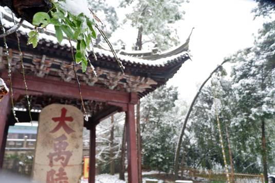 禹庙红阙旁,蜡梅点点黄。幽幽梅香,时时涌动至身旁,不禁令人联想到禹帝当年筚路褴褛、治水定国的艰辛历程,想到流芳百世的大禹精神。