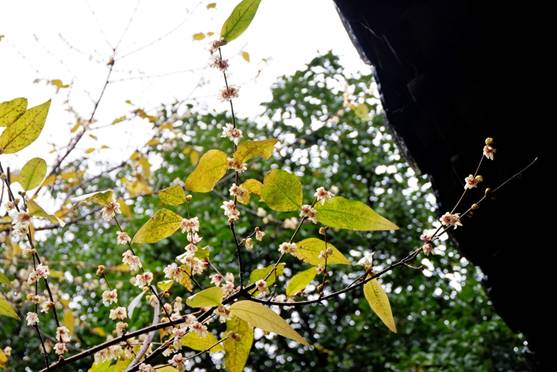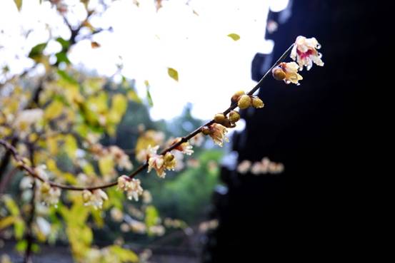 蜡梅的嫩黄花朵缀在枝头,极温柔地、小心翼翼地开放着,提醒着大家腊月既至,春亦不远。