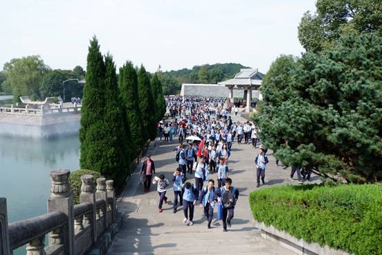 10月19日上午,来自绍兴市高级中学高一年段的莘莘学子汇聚于大禹陵景区,参加“祭祀大禹缅怀先祖、诵读经典弘扬传统文化”的主题研学活动。