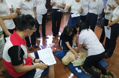 近日,红十字会为景区游客中心配置了自动体外除颤器(AED)。9月3日,为充分发挥AED设备在心脏骤停患者急救方面的功效,守护公众生命安全,红十字会救护专员来到景区,为相关工作人员授课,通过PPT演示、视频教学、假人模拟、理论测验、实操考核等方式,显著提升了景区工作人员的急救知识、技能水平,游客的生命健康又多了一条防线。(冯一君)