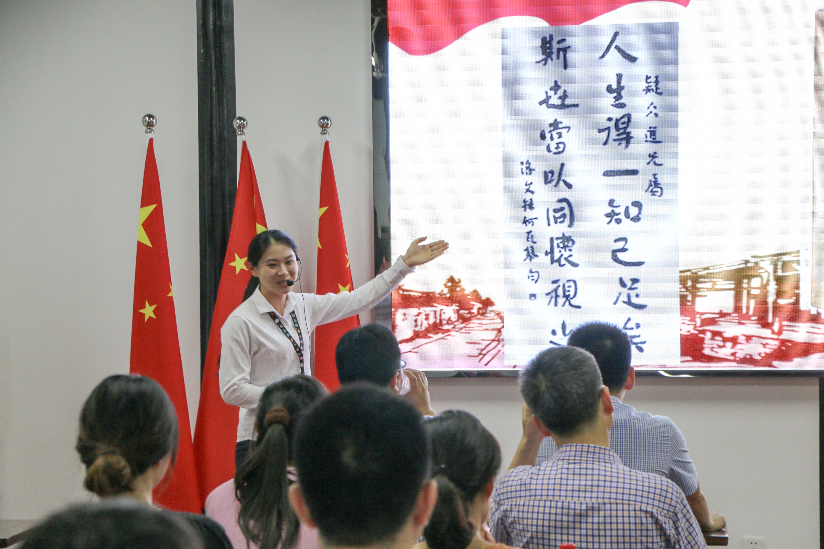 来自三家单位的48位党员齐聚 “鲁迅与共产党人——专题大讲堂”教室,在歌曲《歌唱祖国》的音乐声中开始了一趟关于鲁迅与共产党人之间革命情谊的红色党课之旅。课堂上,主讲人将人物故事娓娓道来,红色图片帧帧翻阅,现场充满了年代感,岁月定格,初心难改。