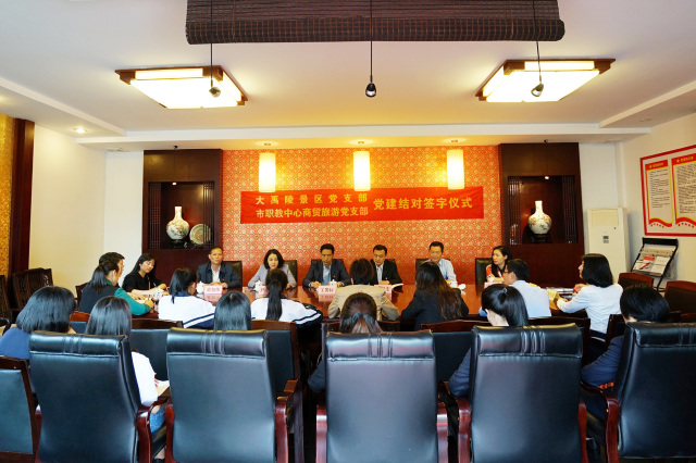 双方支部就如何更好地开展基层党建工作,如何完善景区文化旅游资源与学校资源共享互进等方面进行洽谈交流。