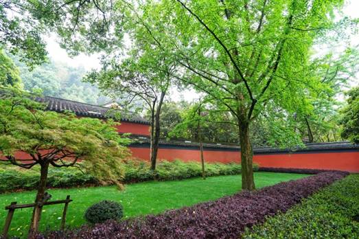 神道延至大禹陵内,植被焕然一新,芳草萋萋。在层层叠叠的绿色中,炫彩鲜花大道等花卉景观,呈现一片生机盎然的景象。