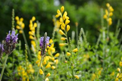 会稽山林间黄金菊、蝴蝶花、三色堇、金雀儿、瓜叶菊等小野花陆续开放,形成了恬淡、静美的苑林美景。在苍松翠柏间,五颜六色的山花烂漫,将春天的会稽山点缀的多彩多姿,分外妖娆,连空气都带着一丝舒畅。