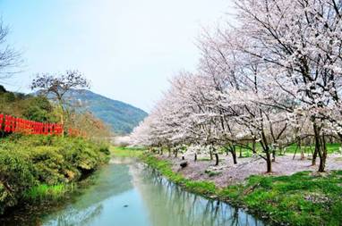 充满春天气息的小河,在樱花烂漫时,漫山遍野的樱花将山麓点缀得粉嫩水灵,沉浸于此,心生浪漫。