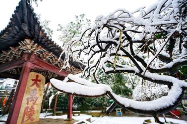 漫天飞舞的雪花勾勒出禹陵冬日特有的味道。