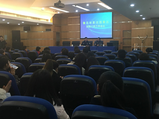 为落实省、市有关人员密集场所反恐工作会议精神,1月2日下午,鲁迅故里沈园景区在新馆报告厅召开了反恐怖“四联三防”工作会议,景区一线员工、街区从业人员和安保人员近百人参会。