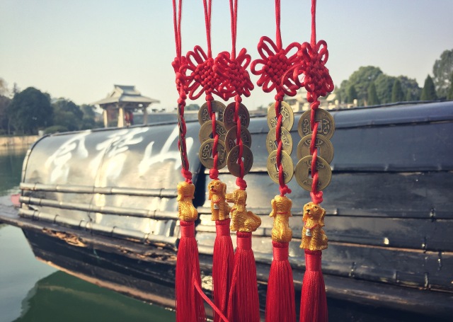 元旦期间,凡乘坐会稽乌篷的游客即可获赠一串狗年三帝钱挂件,三帝钱为乾隆、道光、嘉庆年间的铜钱,谐音“钱到家”,恭祝游客朋友在新的一年里一帆风顺,财源滚滚。