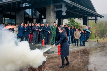 章科长运用风趣诙谐的语言、鲜活的案例,配以图片和视频,为全体景区职工上了一堂生动而又具有教育意义的消防知识课。他用贴近生活的真实案例向大家阐释了提高日常消防安全意识的重要性,告诫大家要做到“预防为主,防消结合”。同时,章科长还着重向大家介绍了如何预防火灾的发生及如何火灾报警和火场逃生,并说明了办公场所和公共场所应配备消防应急器材;希望大家认真学习消防知识,提高自防自救能力。此外,章教官还向大家详细讲解了各种场所的灭火和自救方法。最后,在书法博物馆广场,章科长现场演示了灭火器等消防器材的使用方法。部分新进景区员工在听完章科长介绍后也亲身实战体验了如何利用灭火器灭火。