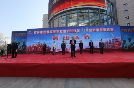 11月9日上午,绍兴市消防支队在迪荡世茂广场上举行了“绍兴市冬春火灾防控暨2017年119消防宣传月活动”启动仪式。先进单位代表、先进个人代表、全民消防我代言行动绍兴地区消防代言人代表以及来自社会各界的群众代表、消防官兵和广大新闻媒体代表等共计400多人参加了启动仪式。
