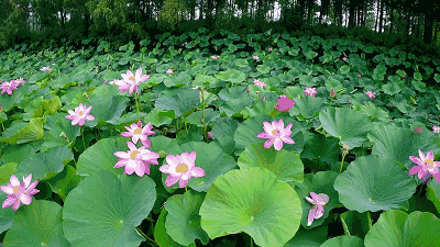 放眼望去,密密麻麻的荷叶铺在水面上,绿意盎然。有的含苞待放,有的张开了三四片花瓣,有的全部盛开了,如一位位亭亭玉立的少女。
