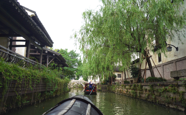 乘着会稽乌篷感受清风徐徐,映入眼帘的是一幅绿意盎然的水墨画,清新而淡雅,绵柔而悠长。