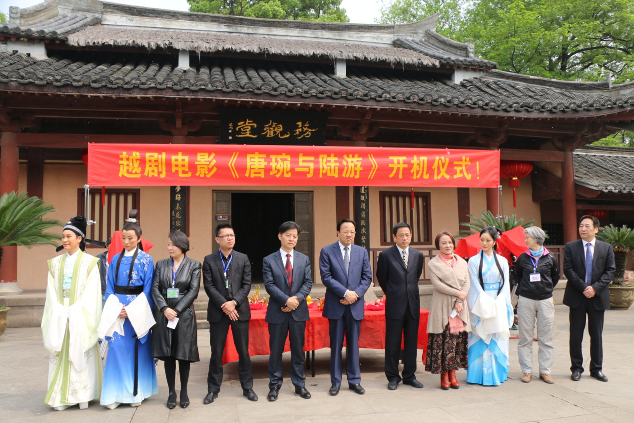 4月12日上午,由绍兴越剧艺术发展有限公司、浙江和通影视文化股份有限公司主办的越剧电影《唐琬与陆游》开机仪式在沈园景区务观堂前广场举行。