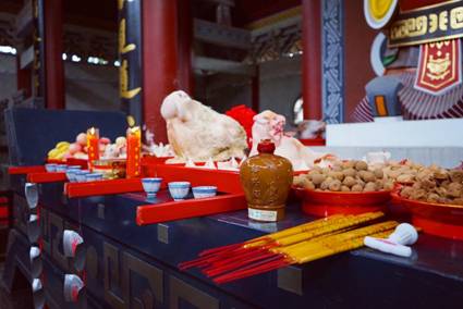 祭祖是华人的传统习俗,是春节期间一项隆重的民俗活动,已有数千年的历史。供奉食物或鲜花以表心意,缅怀自己的祖先,祈求、报答祖先的庇护和保佑。
