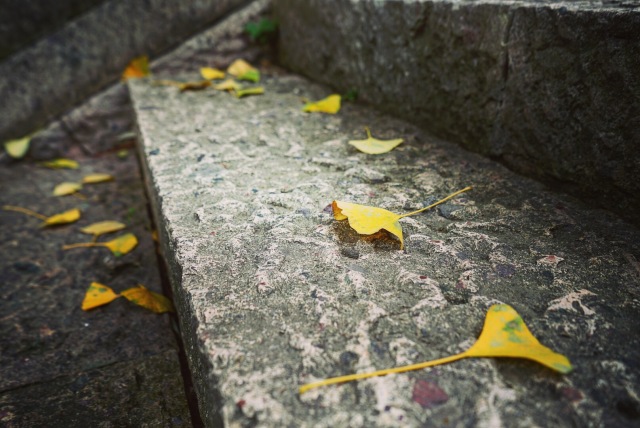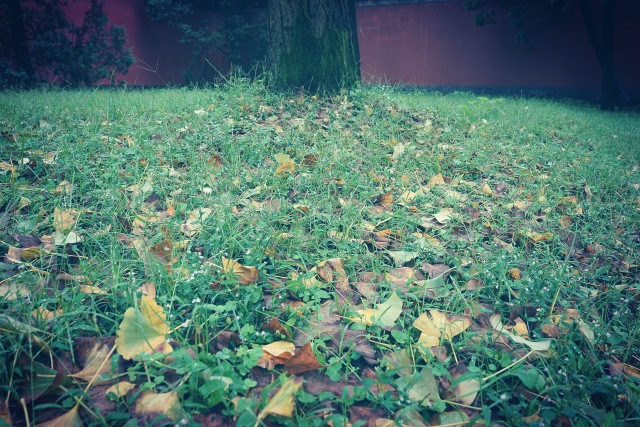 在这样的秋天,树下的芳草地被厚厚的金色的银杏树叶覆盖,踩起来“沙沙”作响