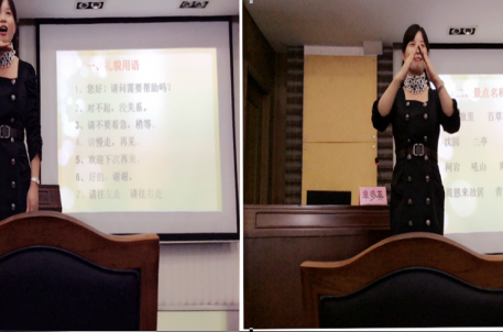 通过这次培训,我们不单单是学会了一种无声的语言,还使我们对一些情感、一些事物有了全新的认识和感受,更为今后给聋哑游客提供更好的服务打下了扎实的基础!