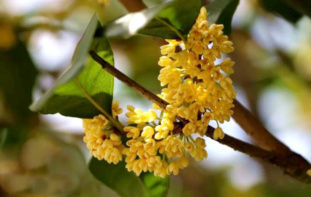 古朴的外形,淡雅的清香,点点金黄散落于桂花大道,暗香浮动。