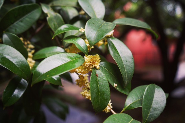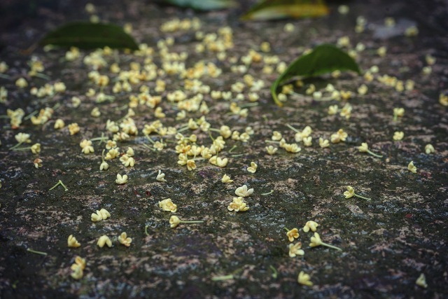 古朴的外形,淡雅的清香,点点金黄散落于桂花大道,暗香浮动。