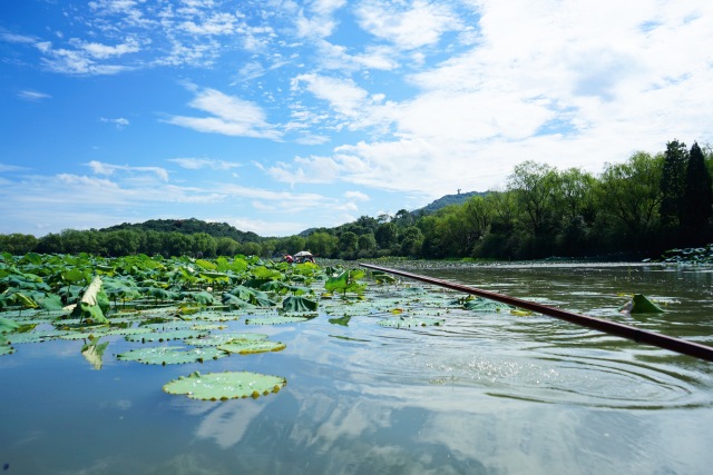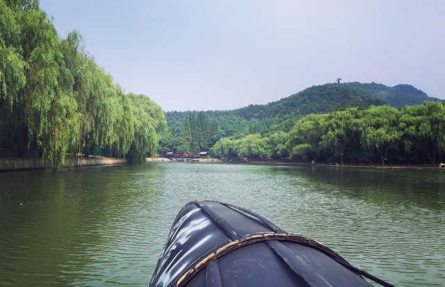 船儿驶出荷花池,映入眼帘的事一幅绿意盎然的水墨画,清新而淡雅,绵柔而悠长。