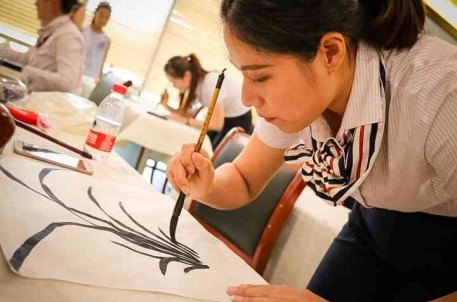 兰亭景区作为知名的书法圣地,在重视讲解员业务技能的同时,也努力营造和培养讲解员兴趣才艺。写的一手好字、画的一副好画,不仅能丰富闲暇生活,更能陶冶心性和情操。在书画展示环节,讲解员们时而真草篆隶,时而写意简笔,展示了书法圣地讲解员优雅气质。