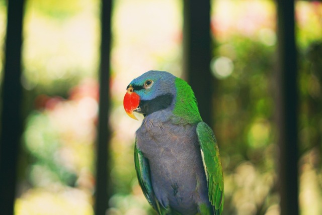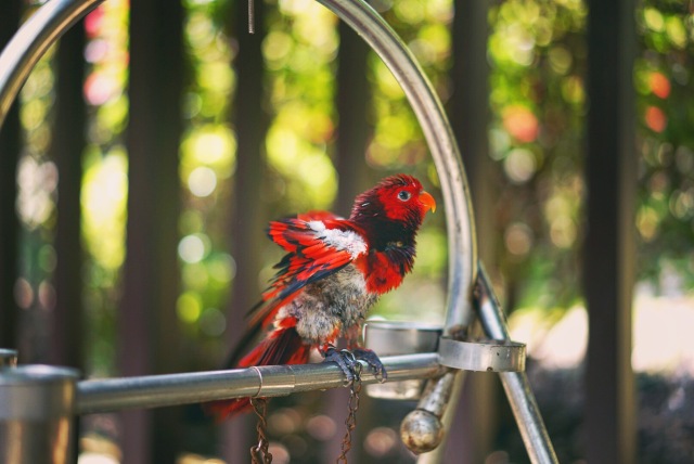 个头小巧的“红吸蜜鹦鹉”一直摆着不同pose,想引起你的注意。