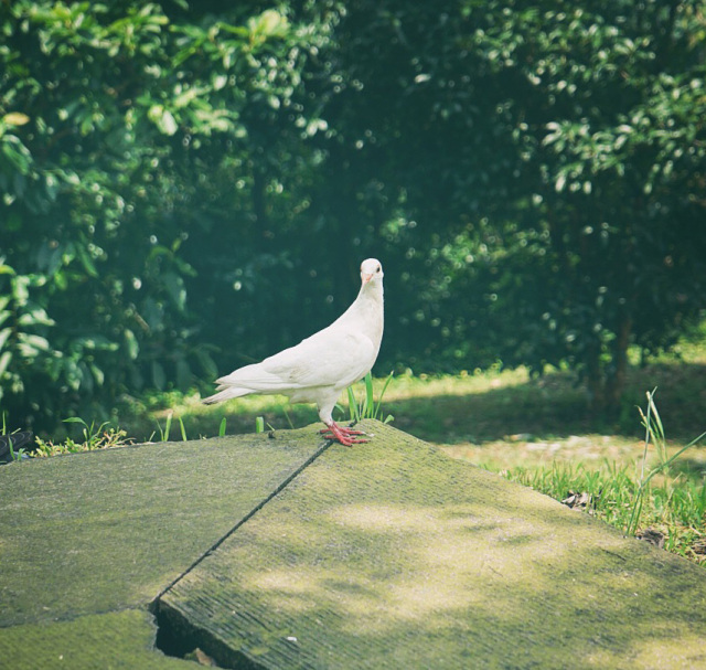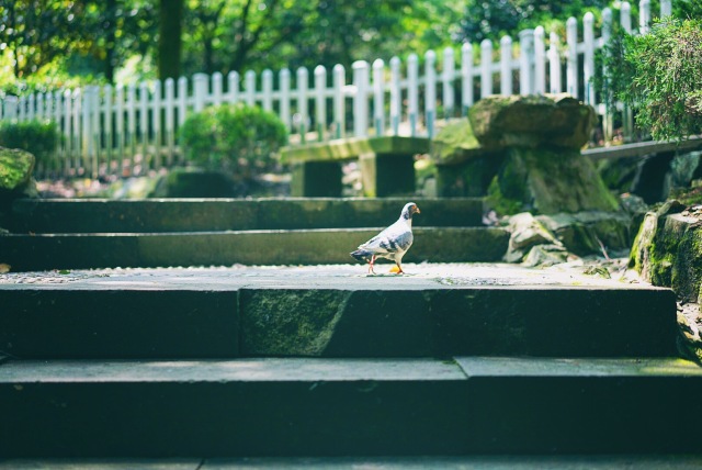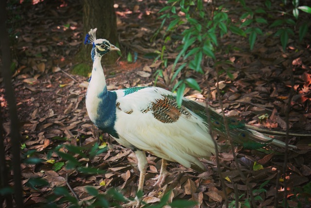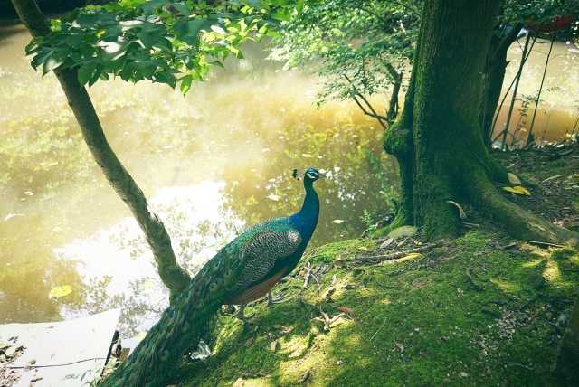 跟着这只闲庭信步的鸽子拾级而上,看到了在小湖边觉得自己美美哒的“孔雀”。